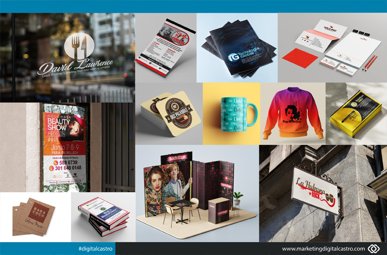 Ejemplos de dentidad de marca, papelería comercial, afiches, pendones, brochure, catalogos, volantes, flyers, publicidad exterior, video corporativo redes, diseño web.